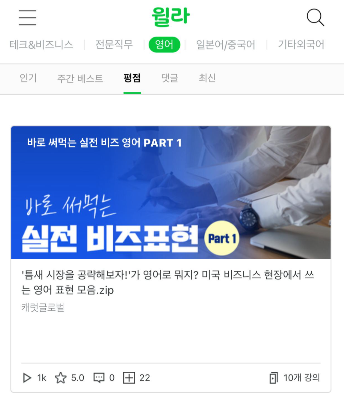 윌라에서 제공되는 콘텐츠 중 클래스를 들여다 봤습니다. 의외로 많은량의 강의들이 있어서 놀라웠습니다. 강의 뿐만 아니라 학습에 도움되는 외국어 콘텐츠도 활용도가 높아보였습니다.