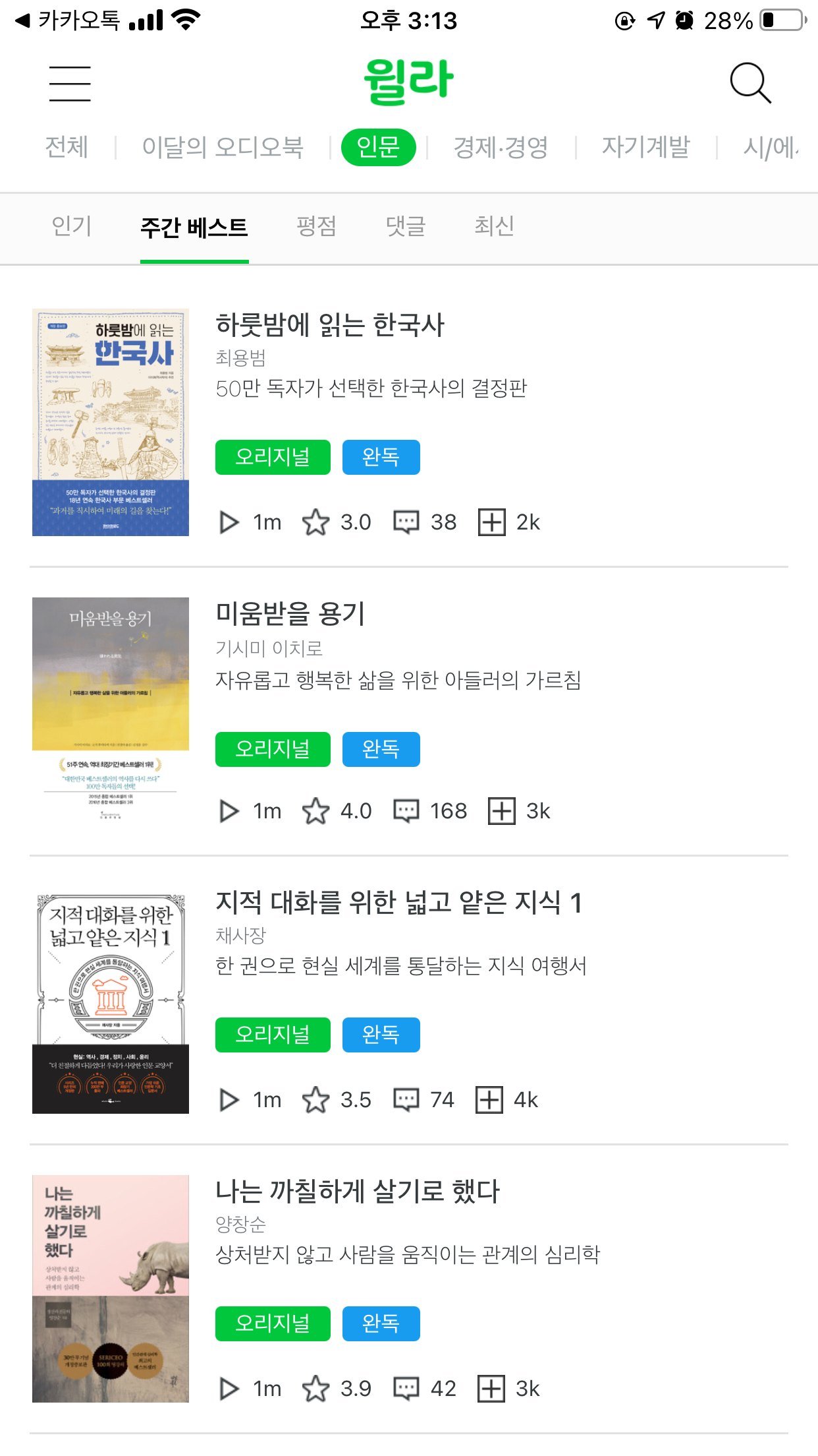 이번에 지적 대화를 위한 넓고 얕은 지식이 전자책으로 나왔다는 소식을 한참전에 알았지만 읽지 못했는데요. 이번 기회에 윌라 오디오북에서 들어보았습니다.