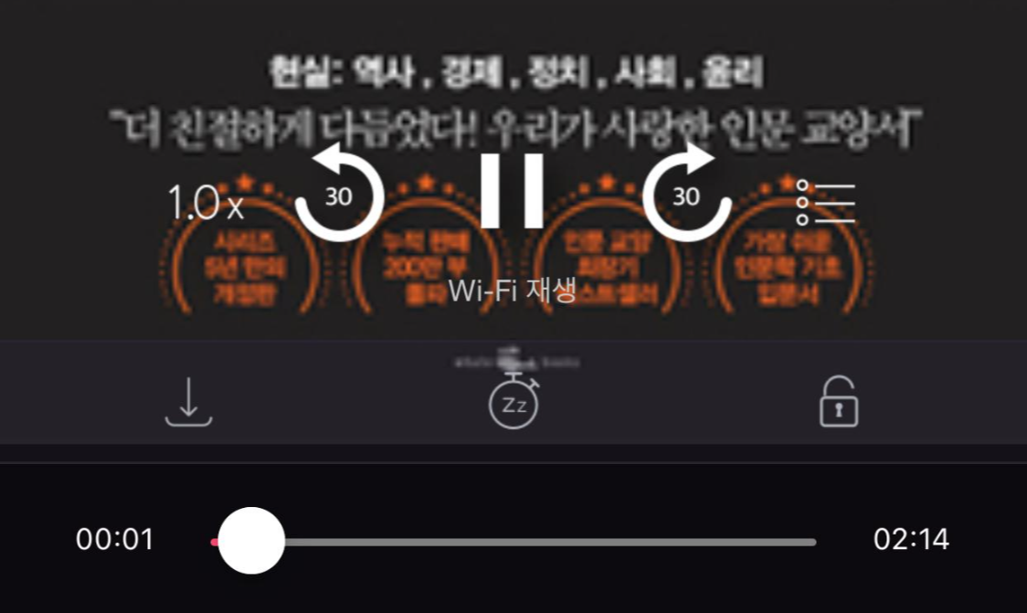 왼쪽에 속도를 조절하여 오디오북을 들으실 수도 있습니다. 저는 1.5배속으로 듣는 것이 가장 좋은 것 같았습니다.