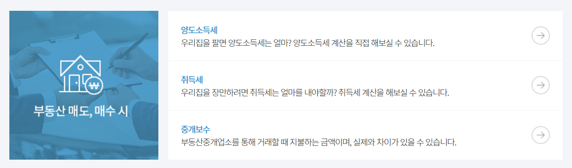 자동으로 계산이 되어 상당히 편리합니다. 먼저 부동산계산기를 선택하시고 접속해주세요. 취득세를 선택하시면 화면이 바로 나타납니다.