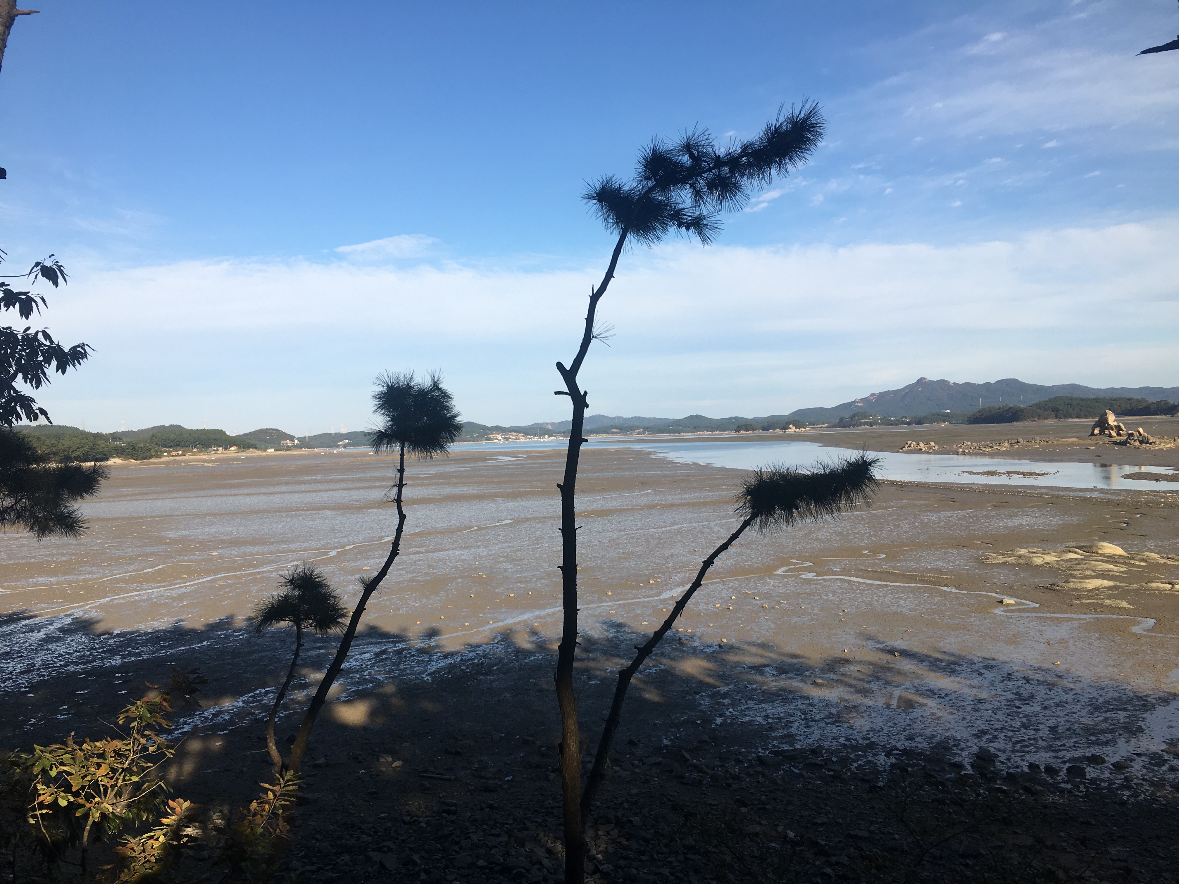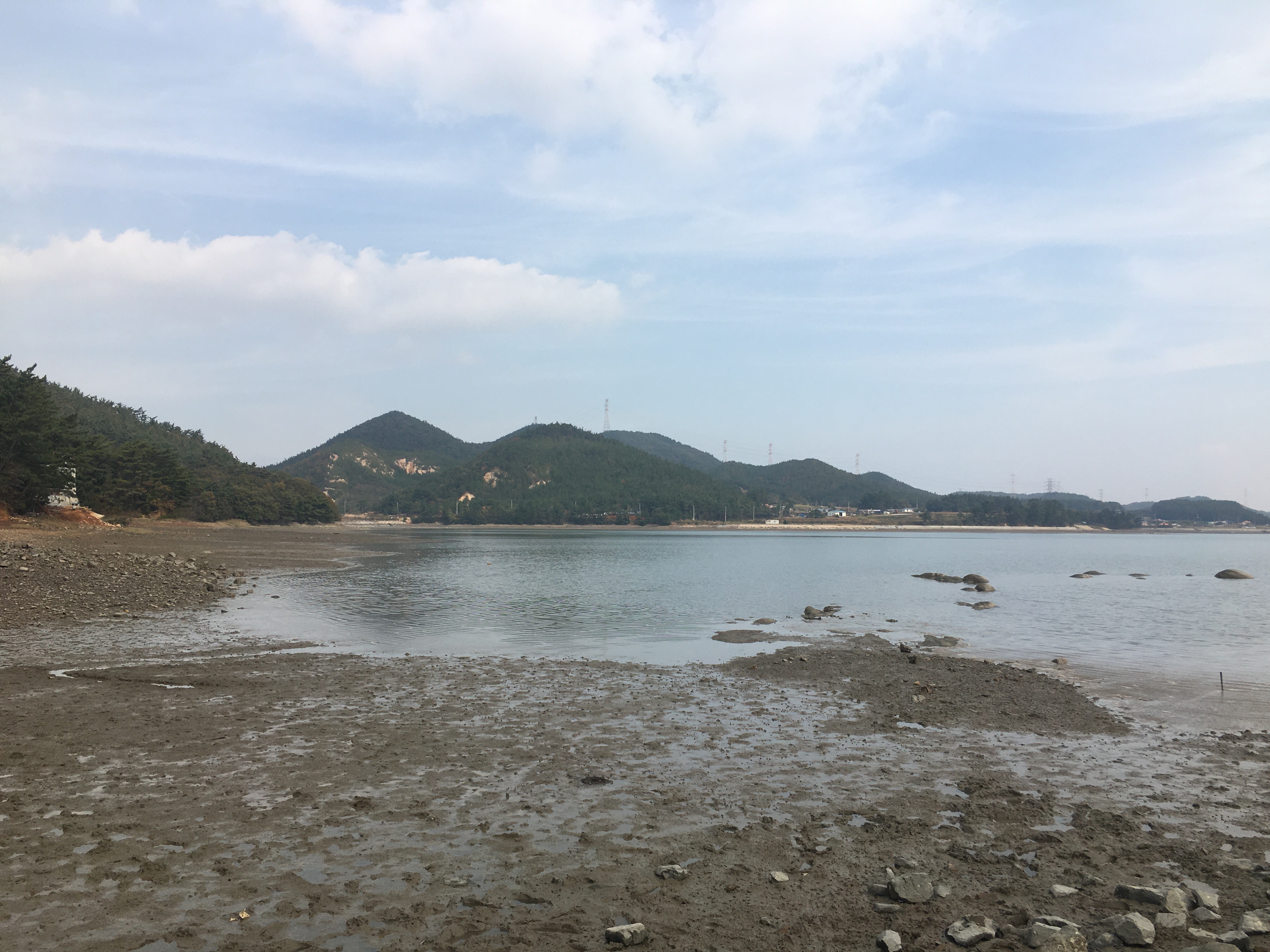 물때가 있는지 물이 들어오고 빠질때 뻘이 나타납니다. 이 곳에서 조개를 캘수도 있다고 합니다.