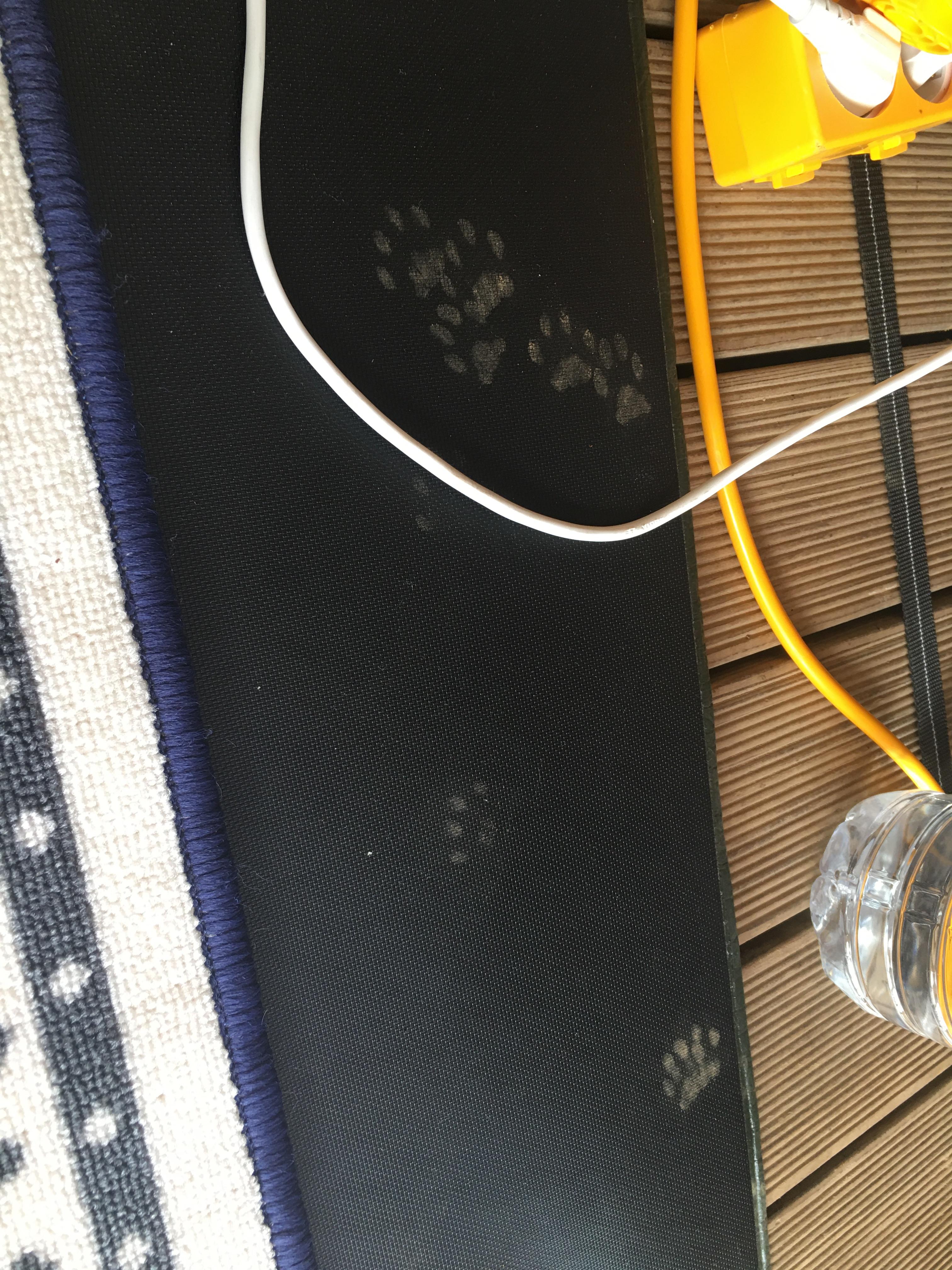 텐트 내에 고양이가 밤사이 들어왔던 흔적입니다. 고양이가 들어온 것 뿐만 아니라 잠을 자고 간 흔적도 발견했습니다. 아마 텐트 내부가 따뜻했던 모양입니다. 주변 정리를 제대로 해두지 않으면 쓰레기통도 뒤지고 난리가 나니 반드시 정리정돈은 해야겠습니다. 이렇게 안까지 들어와서 자고 갈줄은 몰랐는데 참 황당하면서도 재밌는 경험입니다. 그런데 더 심각한 것은 텐트 스커트 부분에 영역 표시까지 하고 갑니다.