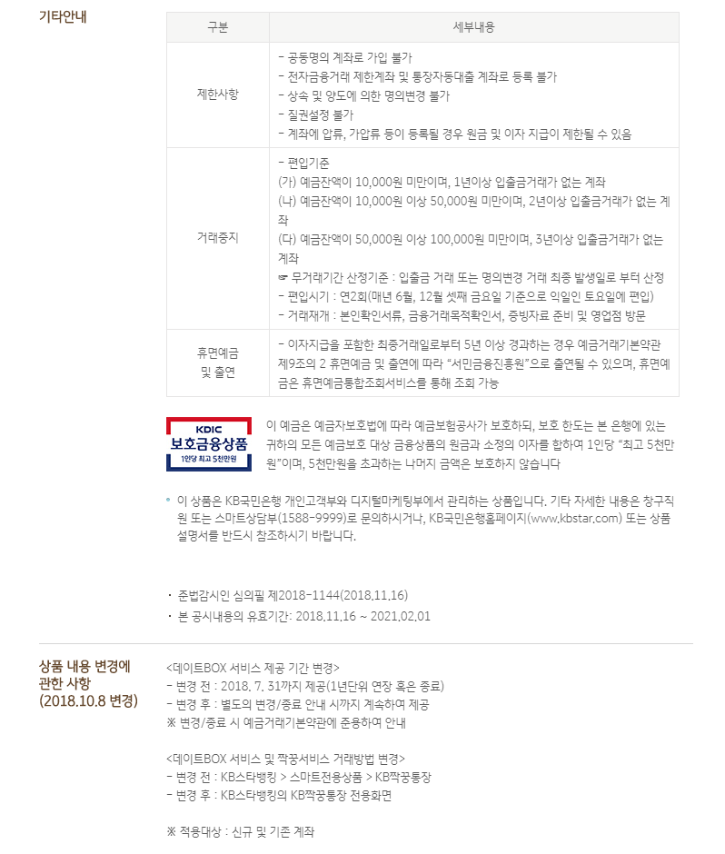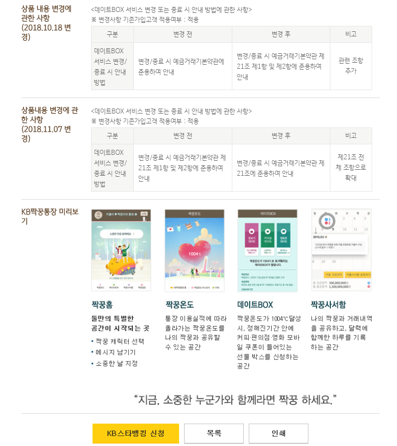 KB짝꿍통장 이용 시 받을 수 있는 데이트박스 서비스 변경 및 종료에 대한 안내사항입니다.