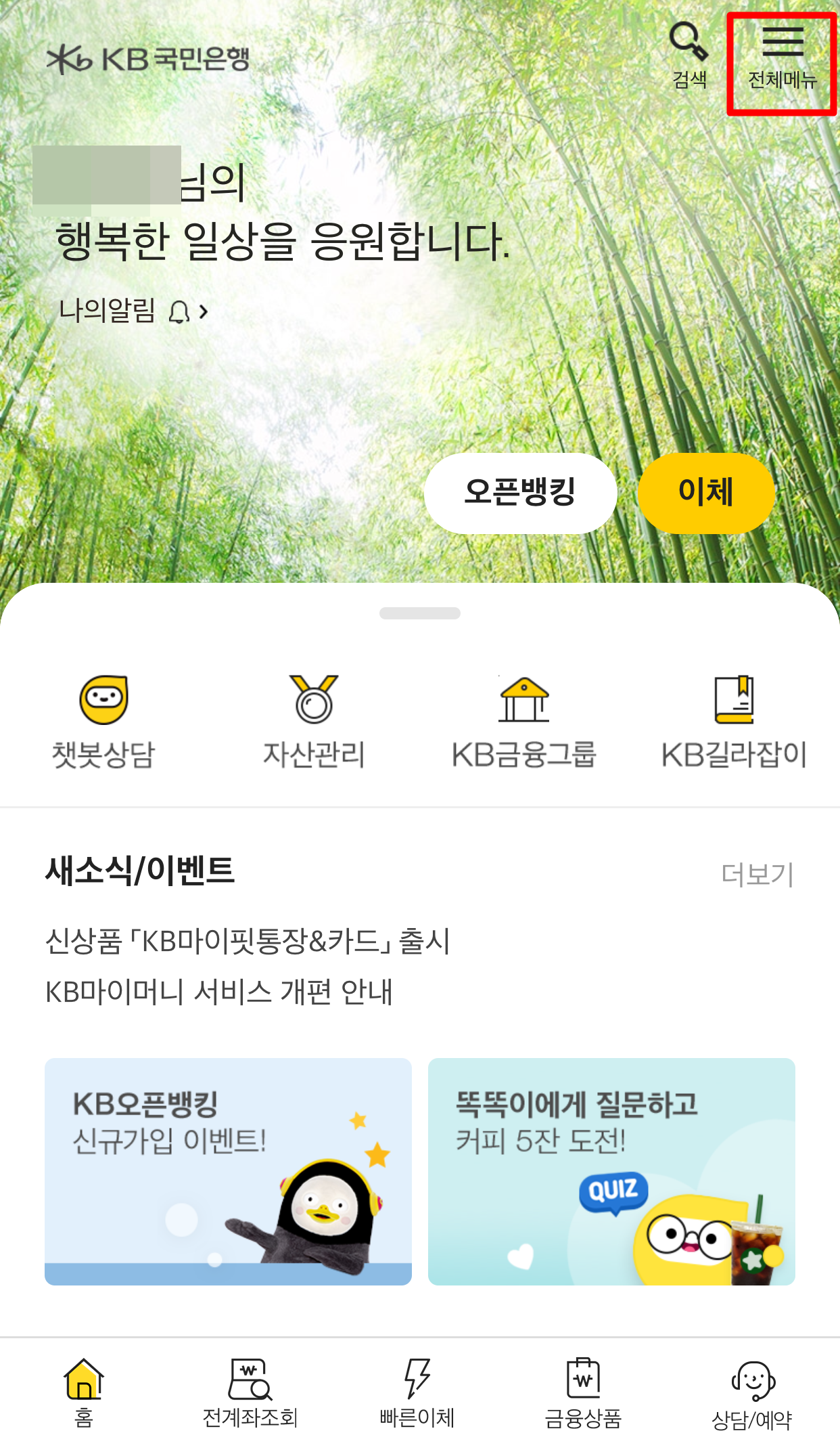 KB스타뱅킹을 다운로드하시고 해당 어플을 켜주시면 됩니다. 공인인증 로그인은 필수입니다.