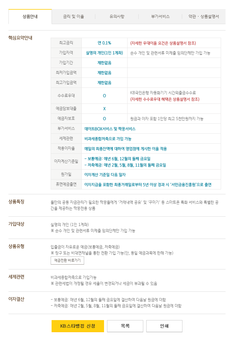 KB짝꿍통장 상품 안내를 살펴보겠습니다.
