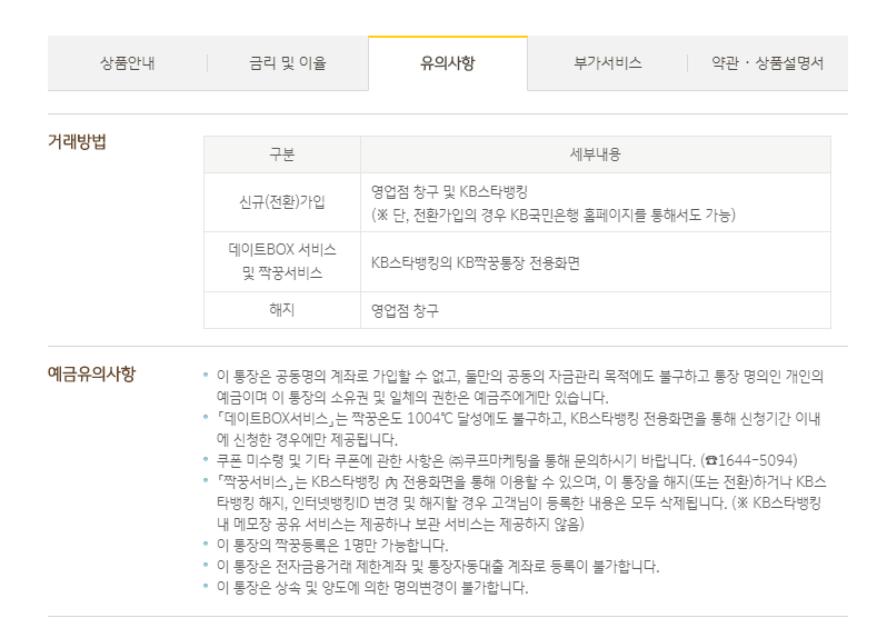 유의사항을 먼저 살펴보시면 신규가입은 영업점 창구 및 KB스타뱅킹을 통해서만 가능하다고 합니다.