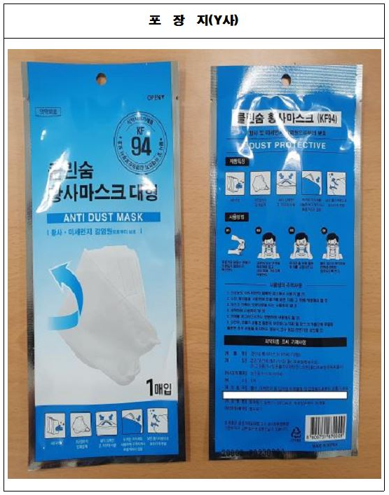 클린숨 가짜마스크도 KF94 식품의약품허가 받았다는 마스크 포장지입니다. 다시한번 강조하는 것은 가짜마스크 구별법에 대해서 완전히 비교해보시고 동봉된 마스크가 가짜마스크인지 확인해주셔야하는 것 입니다.