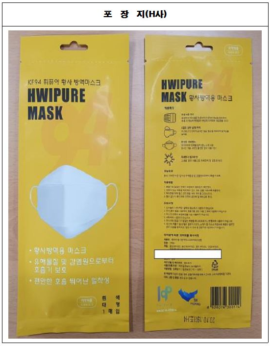 휘퓨어 황사 방역마스크는 같은 포장지이지만 동봉된 마스크의 진위여보는 직접 눈으로 확인하셔야합니다.