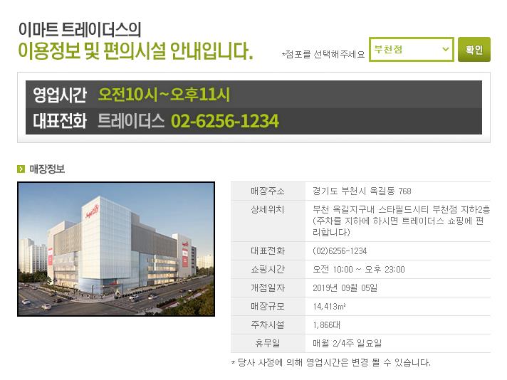 경기도 부천시에 위치한 부천점 입니다. 부천점은 규모가 큰편이고 매월 둘째, 넷째주 일요일이 휴무일 입니다.