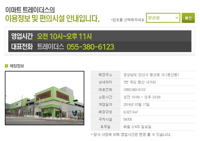 경상남도 양산시에 위치한 양산점 입니다. 7번 국도 평산 사거리에 위치하여 찾아가기 편리합니다. 주차시설이 상당히 적은 편이니 이점 유의하시어 방문하시면 편하게 쇼핑이 가능하리라 생각합니다.