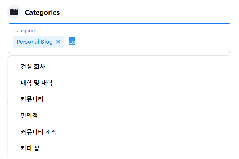 영문 철자 두개만 입력해도 나타납니다. 여기에서 커뮤니티 선택하셔서 이용하시면 되겠습니다. 영문으로 변경했던 언어는 다시 한국어로 변경하셔서 사용하셔도 되고 편하신대로 이용하시면 되겠습니다. 페이스북 페이지 카테고리를 커뮤니티로 변경하고 하시는 분 외에도 다른 다양한 카테고리도 이러한 방법으로 추가하시면 되겠습니다. 도움되셨길 바랍니다.