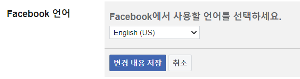 영어로 변경하면 페이스북 전체가 영어로 변경될 것 같지만 자동으로 한국어로 번역되어 출력되기 때문에 전혀 걱정하지 않으셔도 됩니다. 이 상태에서 기존에 만들었던 페이스북 페이지 카테고리 변경을 해보겠습니다.