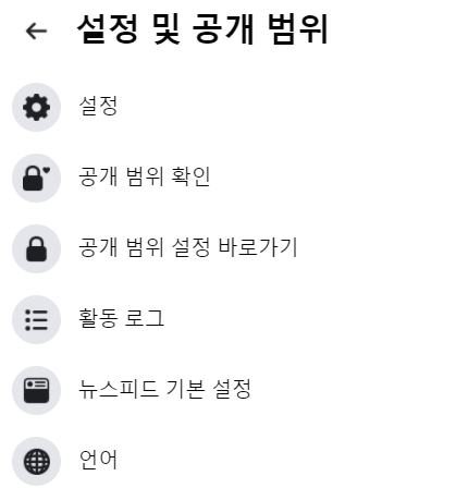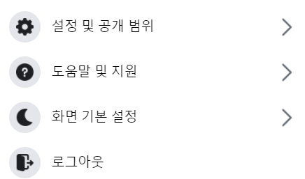 화살표 누른 후에 나타나는 창에서 설정 및 공개 범위를 눌러줍니다.
