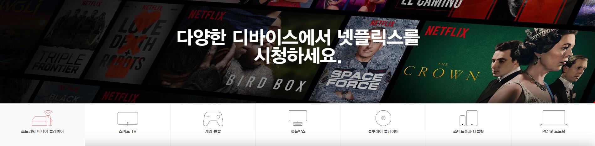 7가지 스트리밍 디바이스를 기반으로 넷플릭스 영화를 감상하실 수 있습니다.