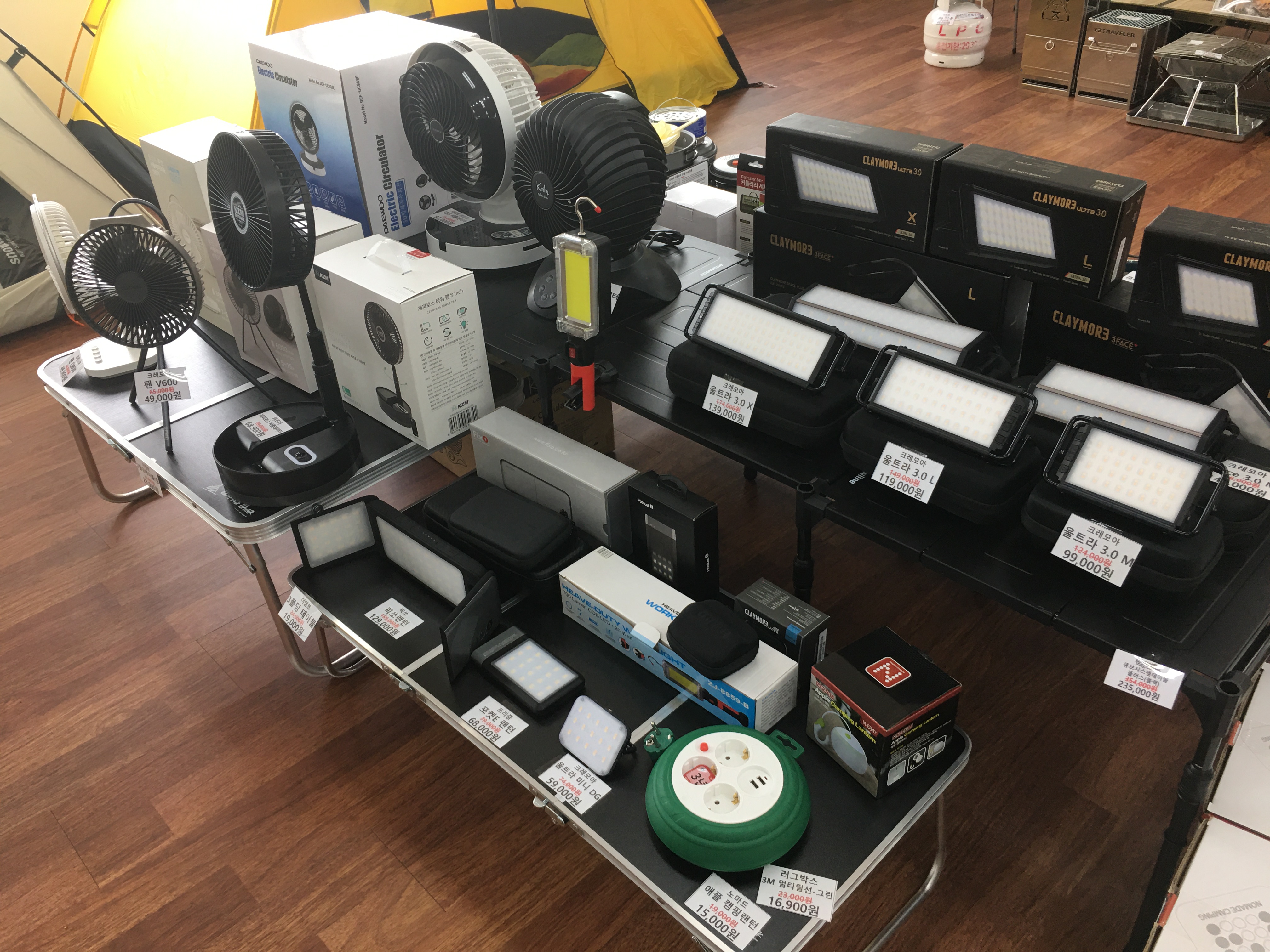 감성캠핑의 필수품들도 많이 보이고 물욕이 솟아나는 제품들이 많습니다.