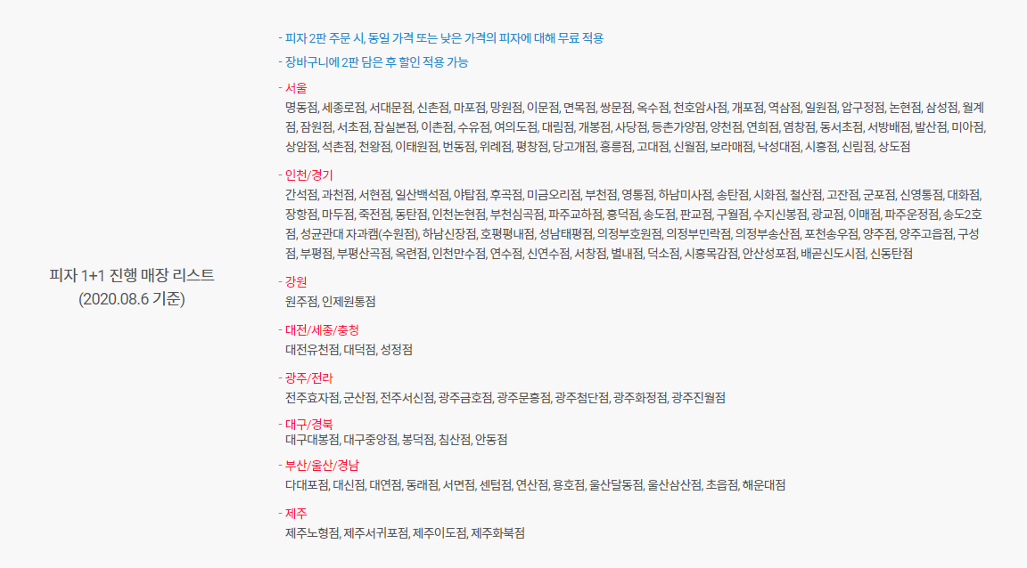 화목한데이 도미노피자 할인 행사는 8월 31일까지 입니다. 일부매장에서는 할인이 불가하오니 아래 매장명을 꼼꼼히 살펴보시고 이용하시면 좋겠습니다.