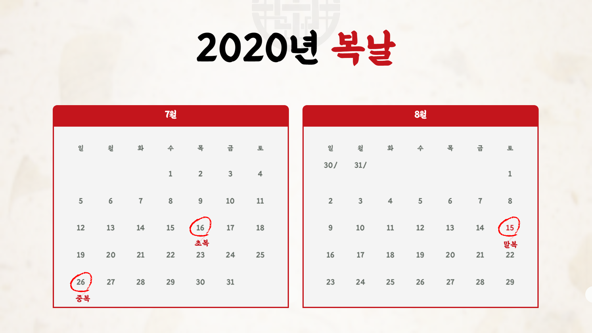 2020년 복날은 언제일까요?