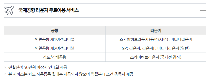 국제공항 라운지 무료 이용 서비스 또한 매력적입니다.