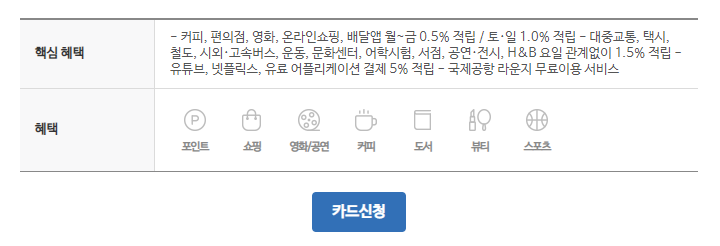 라이언 치즈 체크카드의 핵심 혜택을 보시면 적립 위주의 다양한 혜택을 보실 수 있습니다.