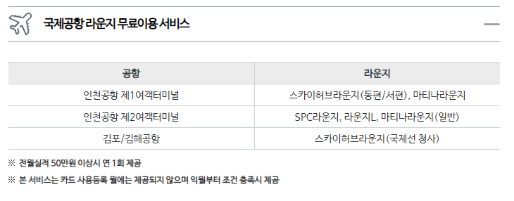 국제공항 라운지 무료 이용 서비스 또한 매력적입니다.
