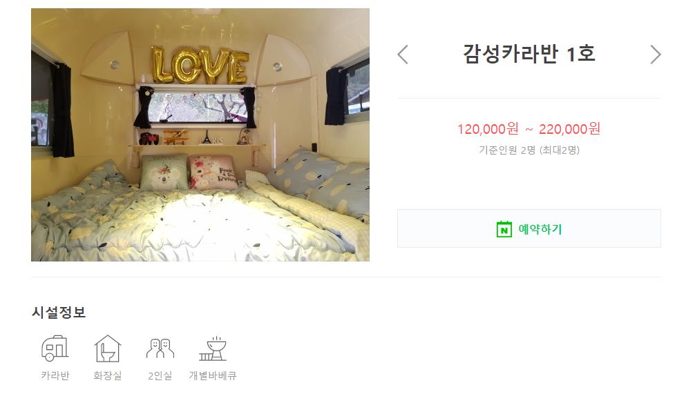 이용금액 2인 기준 (감성카라반1호) 120,000원 ~ 220,000원