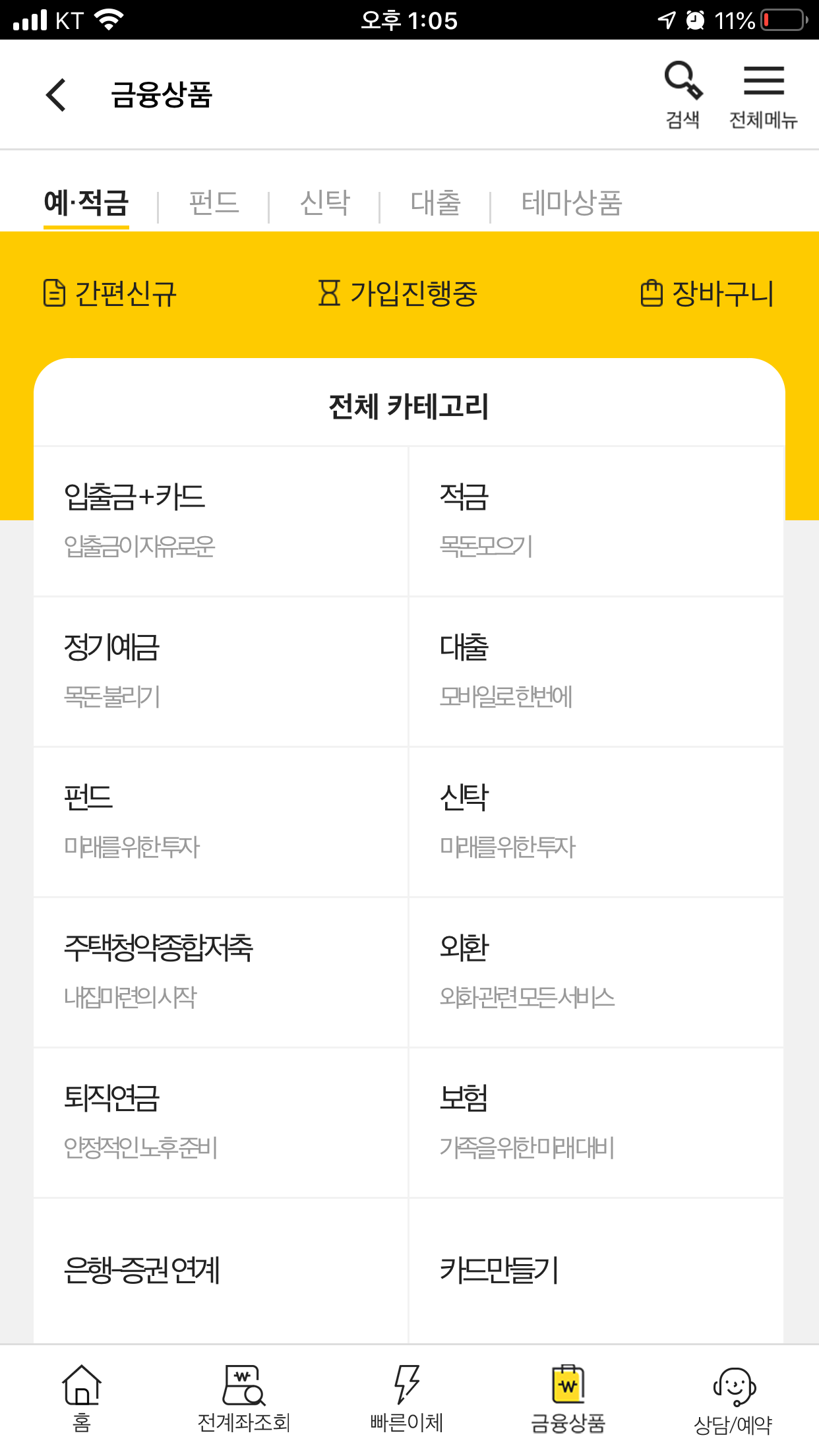 홈페이지 전체 카테고리에서 외환에 해당하는 곳으로 접속해주시면 되는데요. 국민은행 모바일 어플을 통해서도 쉽게 개설하실 수 있습니다. 모바일에서는 KB스타뱅킹 어플리케이션을 다운로드 하시고 공인인증서 로그인 후에 금융상품에 해당하는 카테고리로 이동해주시면 됩니다.