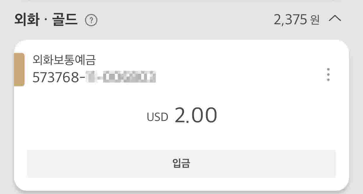 개인정보를 통하여 가입 진행 후 마지막에는 가지고 있던 국민은행 보통예금 계좌에서 2달러를 입금하게 됩니다. 이 과정이 반드시 수행되어야 계좌개설이 완료되며 가입해본 결과 외환계좌도 일반 보통예금 계좌와 동일하게 사용할 수 있었습니다. 계좌 개설시 주의하실 점은 계좌 개설이 아무때나 계속 할 수 있는 것은 아니며 최근 20일 영업일에 해당하는 시간내에는 개설이 불가능하다는 점 알고계시면 좋겠습니다.
