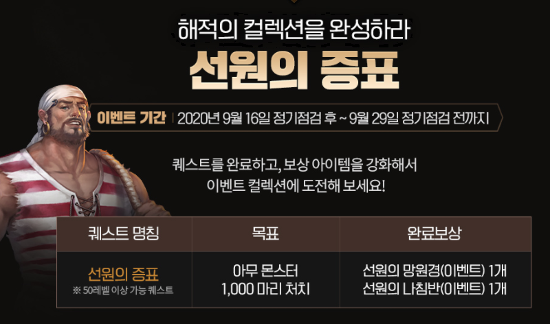 이번 이벤트는 해적의 컬렉션을 완성하라는 메인 슬로건을 걸고 선원의 증표와 신규 아이템 컬렉션이 추가 된다고 합니다.