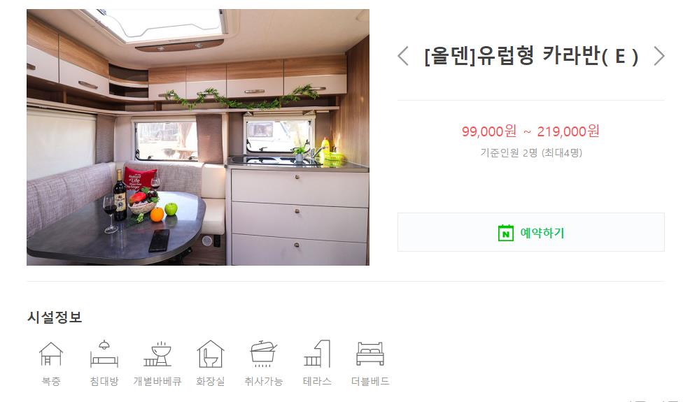 이용금액 2인 기준 (유럽형 카라반) 99,000원 ~ 219,000원