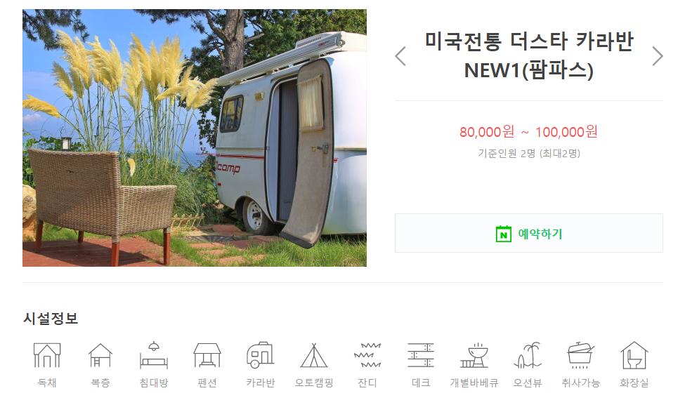 이용금액 2인 기준 (미국 전통 더스타 카라반 NEW1) 80,000원 ~ 100,000원