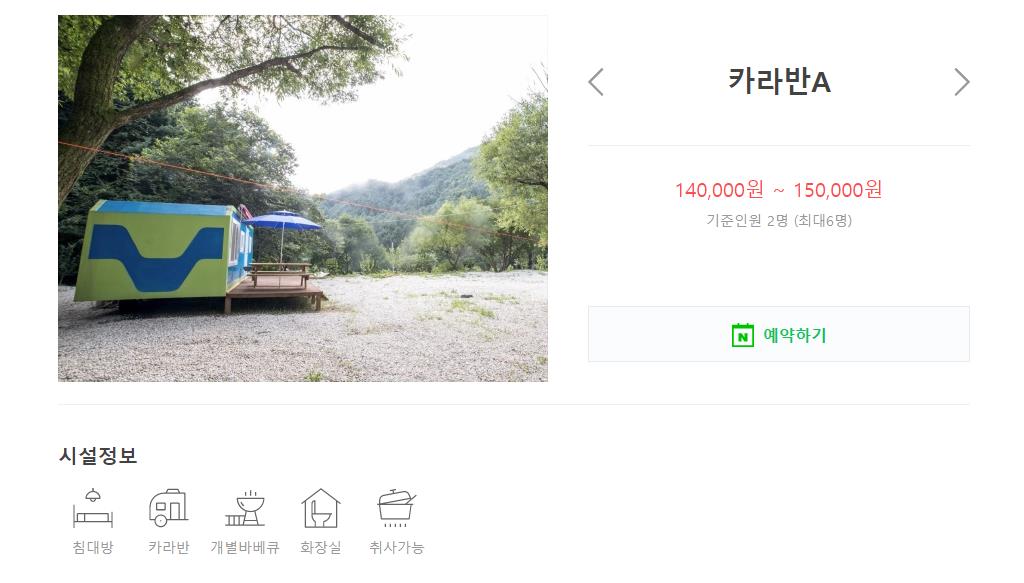 이용금액 2인 기준 (카라반A) 140,000원 ~ 150,000원